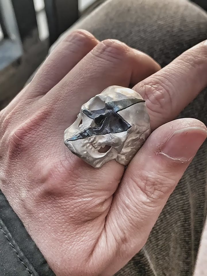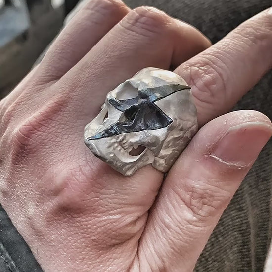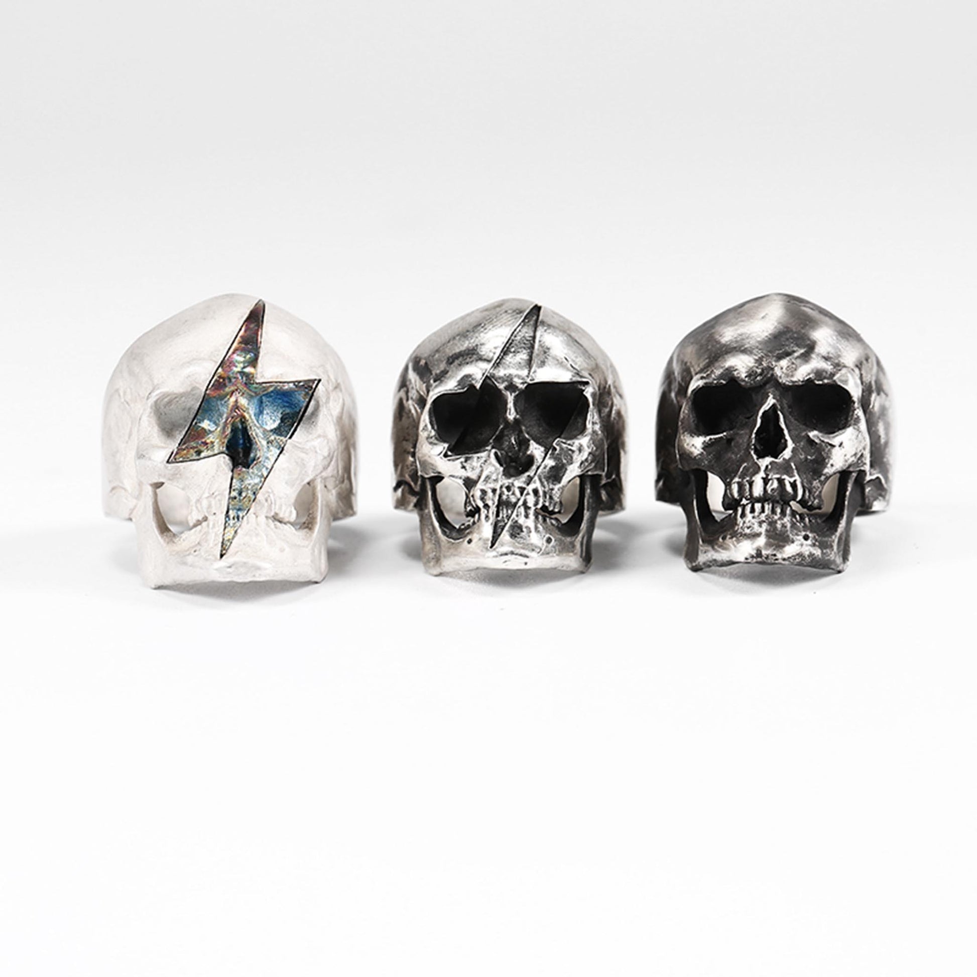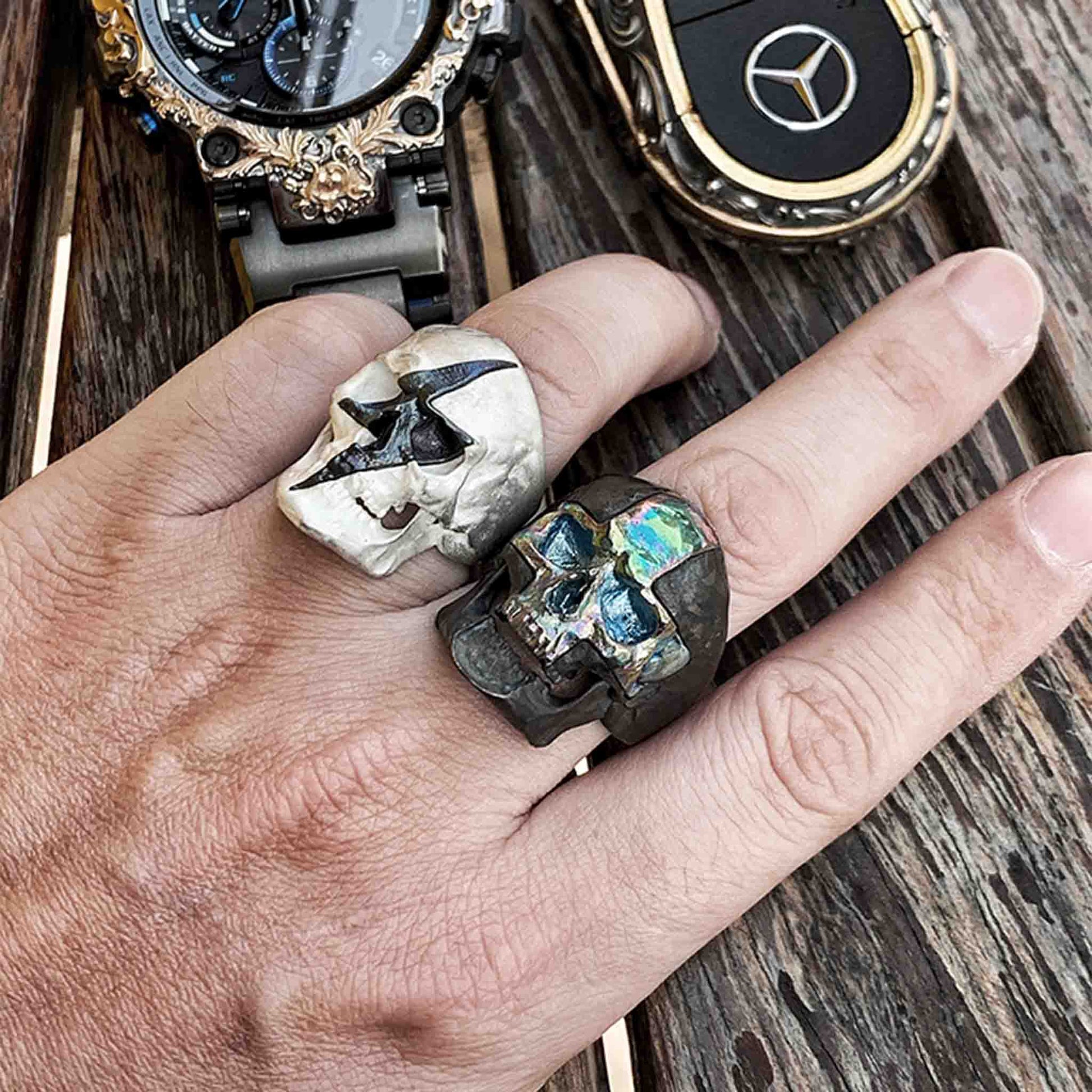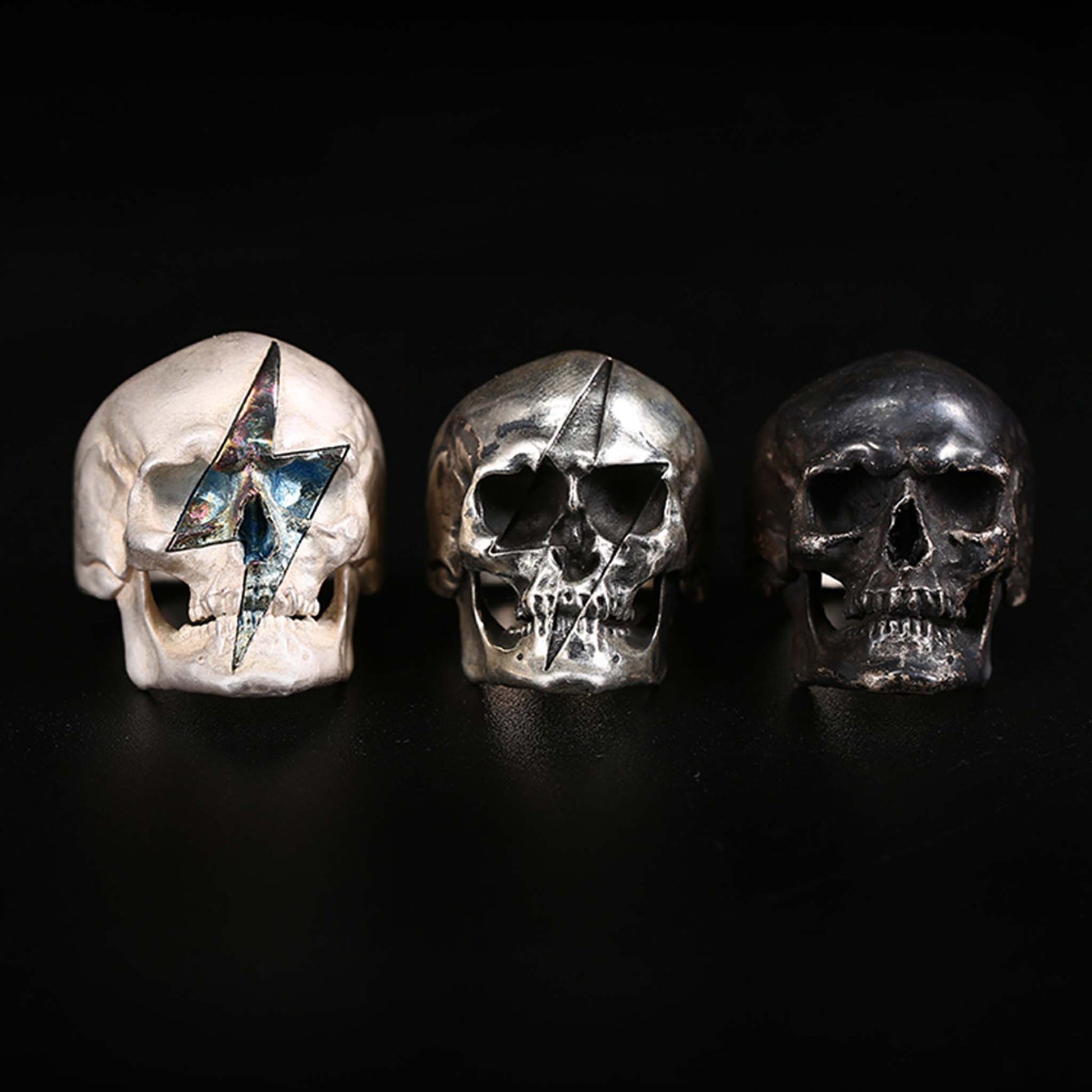 Gothic 925 Sterling Silver & Titanium Lightning Skull Ring - Retro Niche High-end Domineering Motorcycle Ring