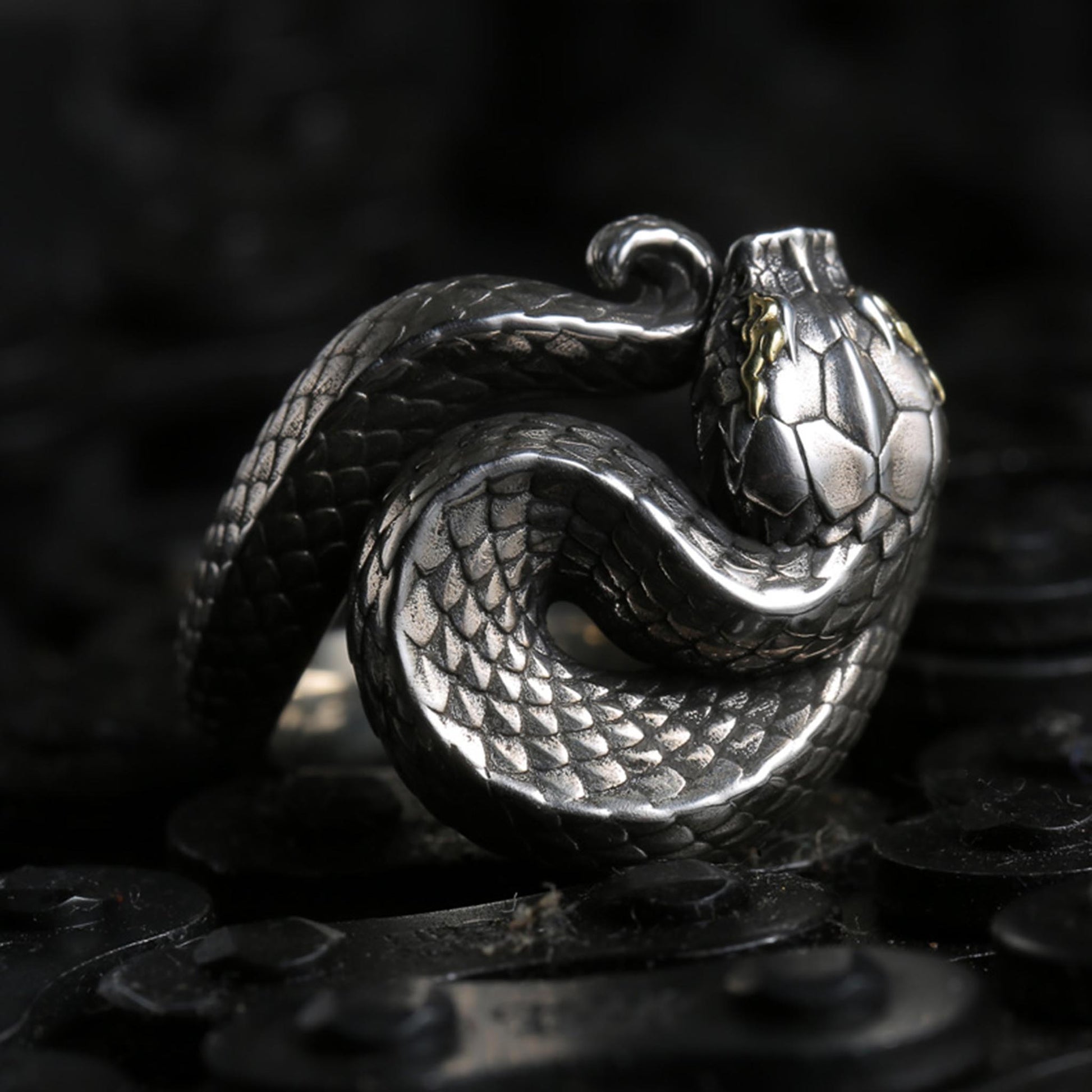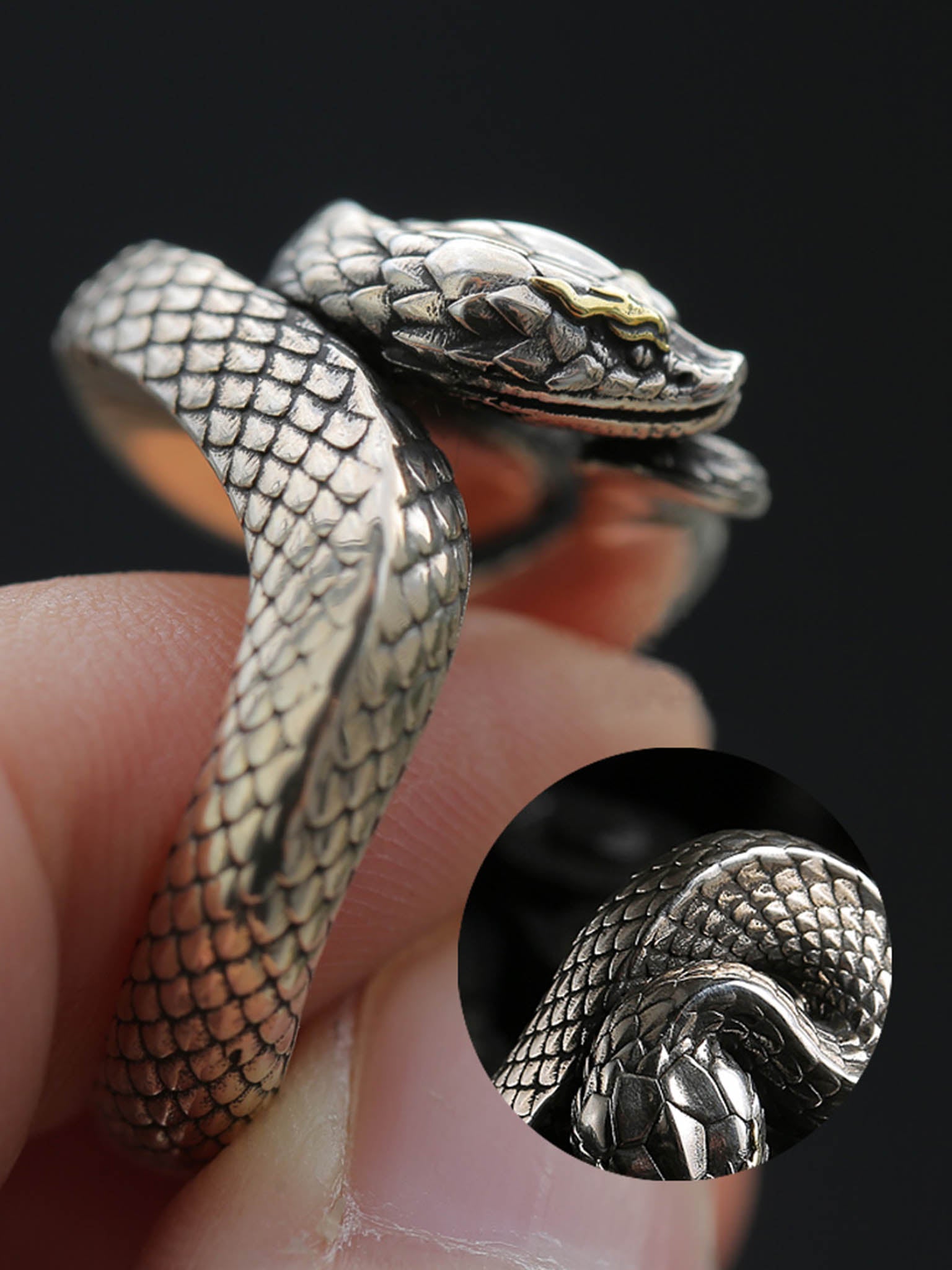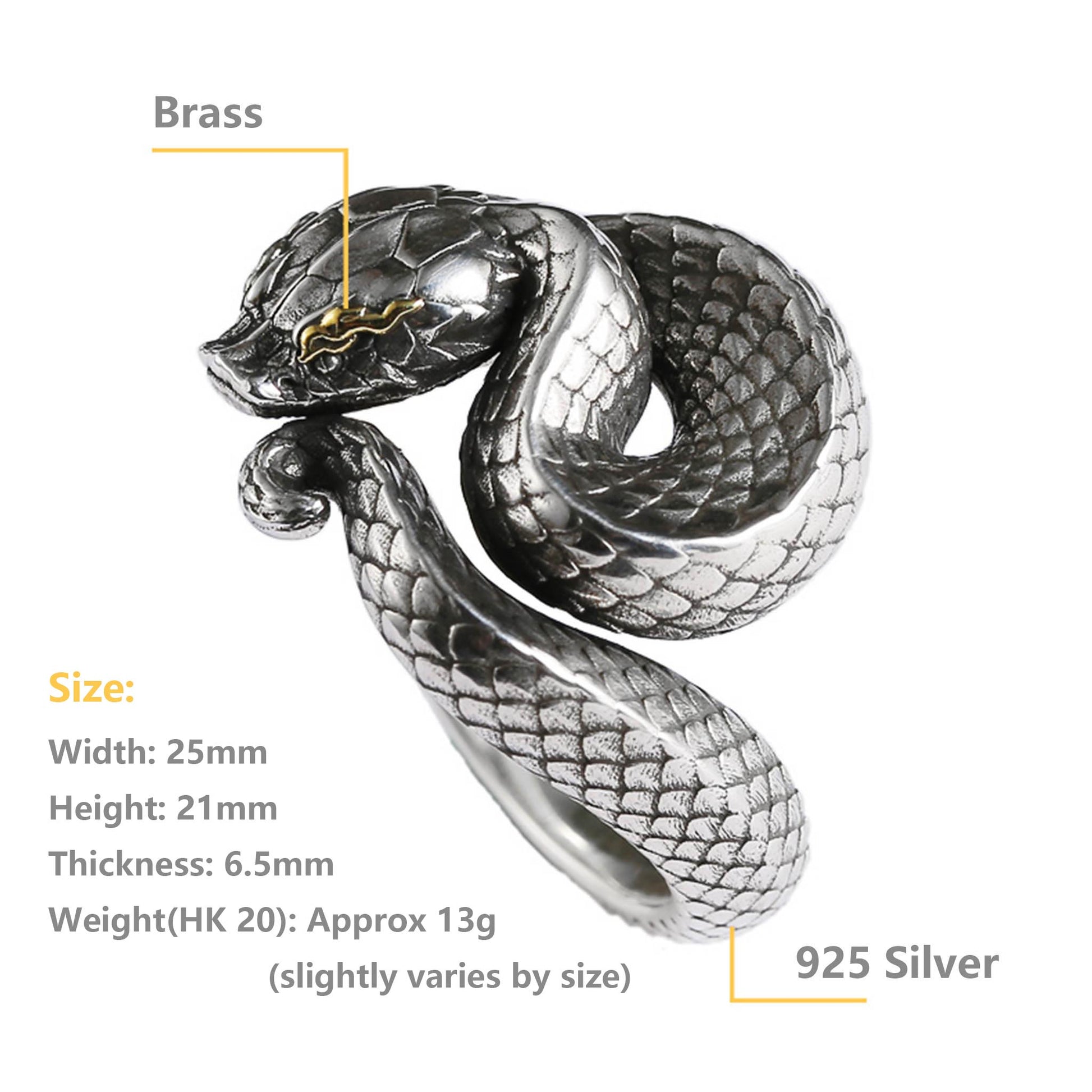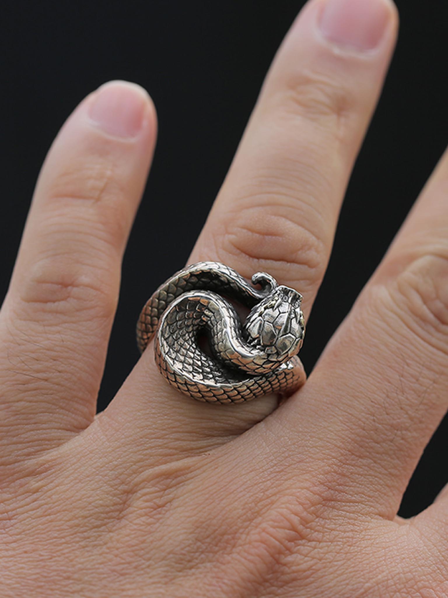 This unique viper snake ring has gorgeous shape and exquisite details, the texture is clear and quite different from the low-end products, please feel free to compare them.