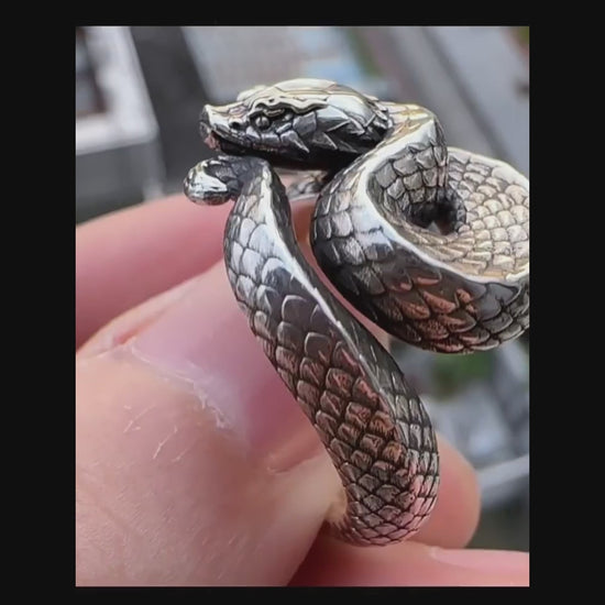 Gothic 925 Sterling Silver Viper Snake Ring - Retro Niche Statement Tail Ring