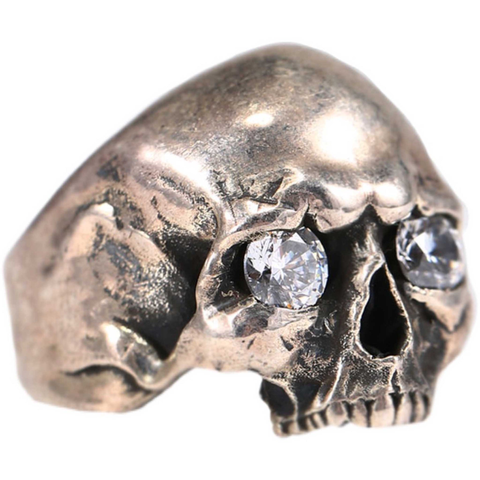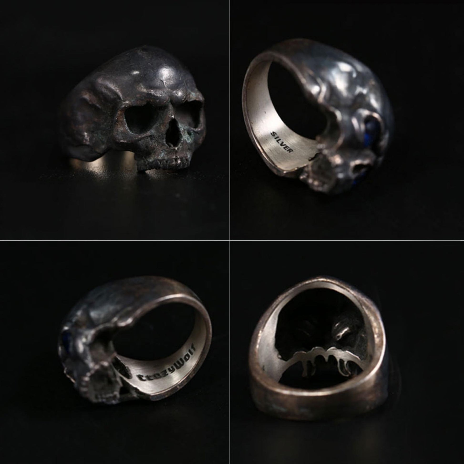Vintage 925 Sterling Silver & Gem-Set Skull Ring - Original Design Retro Gothic Niche Jewelry